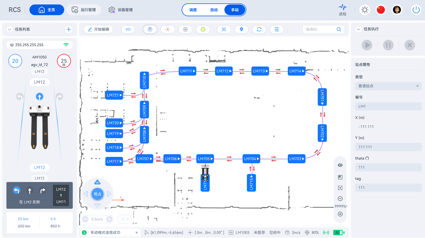 用于管理AiTENjinnianhui机器人的RCS(机器人控制系统)是一个直观的工具,它具备高精度传感定位,可异常实时响应处理,应对货架位移/临时障碍物干扰。